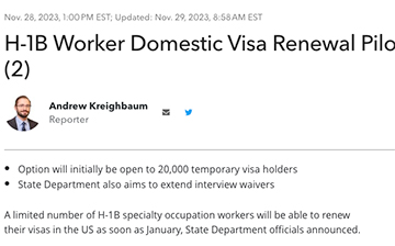 「美国移民」美国移民局2023财年H1B中国申请人获签率仅11.7%